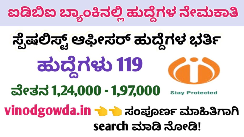 IDBI Bank Specialist Cadre Officers Recruitment 2025 : ಐಡಿಬಿಐ ಬ್ಯಾಂಕಿನಲ್ಲಿ ಅಗತ್ಯವಿರುವ ಸ್ಪೆಷಲಿಸ್ಟ್ ಕೇಡರ್ ಆಫೀಸರ್ ಹುದ್ದೆಗಳ ಭರ್ತಿಗೆ ಅರ್ಹ ಹಾಗೂ ಆಸಕ್ತ ಅಭ್ಯರ್ಥಿಗಳಿಂದ ಅರ್ಜಿ