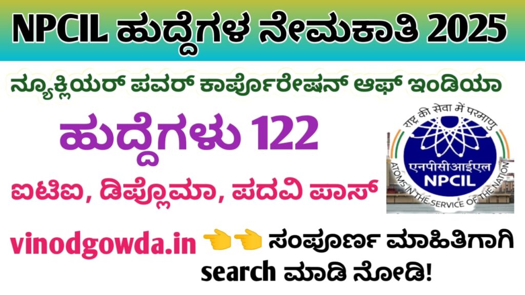 NPCIL Apprentice Recruitment 2025 : ನ್ಯೂಕ್ಲಿಯರ್ ಪವರ್ ಕಾರ್ಪೊರೇಷನ್ ಆಫ್ ಇಂಡಿಯಾ ಲಿಮಿಟೆಡ್ ಇದರಲ್ಲಿ ಅಗತ್ಯವಿರುವ ಅಪ್ರೆಂಟಿಸ್ ಹುದ್ದೆಗಳ ಭರ್ತಿಗೆ ಅರ್ಹ ಹಾಗೂ ಆಸಕ್ತ ಅಭ್ಯರ್ಥಿಗಳಿಂದ ಅರ್ಜಿಗಳನ್ನು