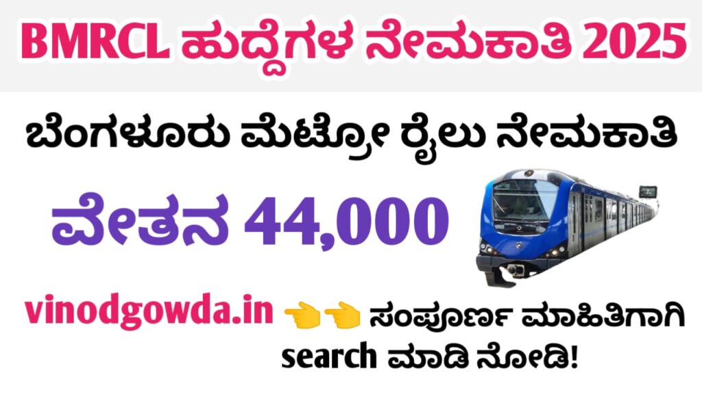 BMRCL Graduate Engineer Recruitment 2025 : ಬೆಂಗಳೂರು ಮೆಟ್ರೋ ರೈಲು ನಿಗಮ ನಿಯಮಿತದಲ್ಲಿ ಅಗತ್ಯವಿರುವ ಗ್ರಾಜ್ಯುಯೇಟ್ ಇಂಜಿನಿಯರ್ ಹುದ್ದೆಗಳ ಭರ್ತಿಗೆ ಅರ್ಹ ಹಾಗೂ ಆಸಕ್ತ ಅಭ್ಯರ್ಥಿಗಳಿಂದ ಅರ್ಜಿ