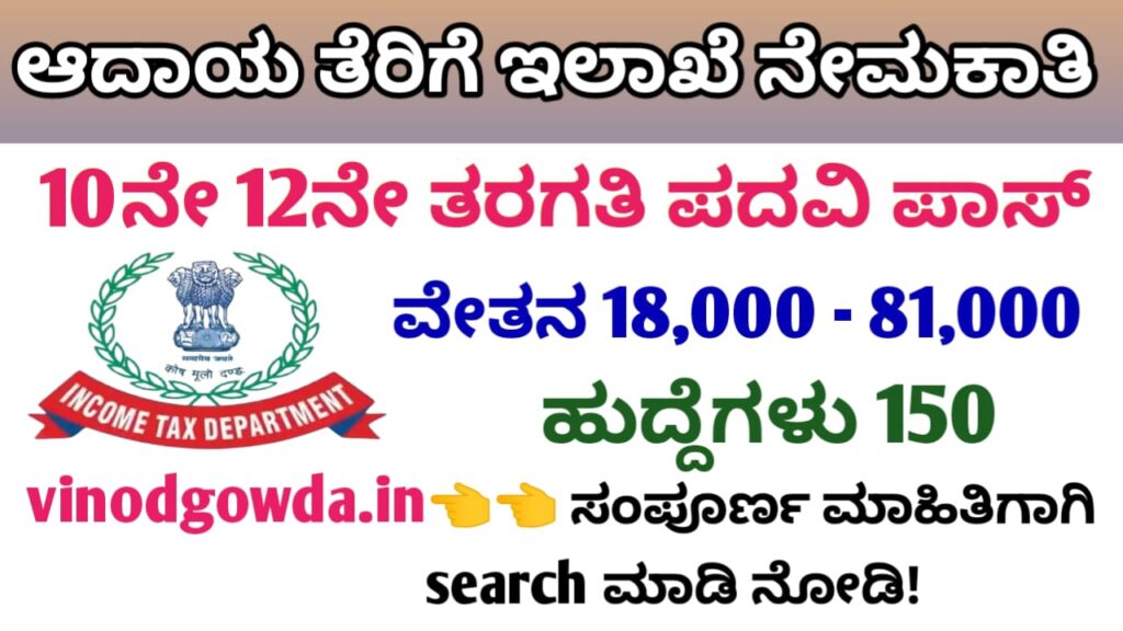 Income Tax Department Recruitment 2025 : ಆದಾಯ ತೆರಿಗೆ ಇಲಾಖೆಯಿಂದ ಸ್ಟೆನೋಗ್ರಾಫರ್, ಟ್ಯಾಕ್ಸ್ ಅಸಿಸ್ಟಂಟ್ ಹಾಗೂ ಮಲ್ಟಿ ಟಾಸ್ಕಿಂಗ್ ಸ್ಟಾಫ್ ಹುದ್ದೆಗಳ ಭರ್ತಿಗೆ ಅರ್ಹ ಹಾಗೂ ಕ್ರೀಡಾ