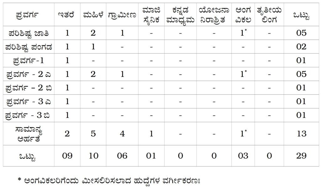 ಖಾಲಿಯಿರುವ ಹುದ್ದೆಗಳ ಸಂಖ್ಯೆ : ಒಟ್ಟು 30 ಹುದ್ದೆಗಳ ಭರ್ತಿಗೆ ಅರ್ಜಿಯನ್ನು ಆಹ್ವಾನಿಸಲಾಗಿದೆ. (01 ಹಿಂಬಾಕಿ ಹುದ್ದೆ ಮತ್ತು 29 ಹೊಸ ಹುದ್ದೆ)