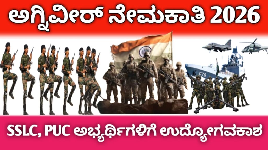 ಎಸ್ಸೆಸ್ಸೆಲ್ಸಿ, ಪಿಯುಸಿ ಅಭ್ಯರ್ಥಿಗಳಿಗೆ ಉದ್ಯೋಗಾವಕಾಶ – ಅಗ್ನಿವೀರ್ ನೇಮಕಾತಿ 2026 ಅಧಿಸೂಚನೆ ಪ್ರಕಟ