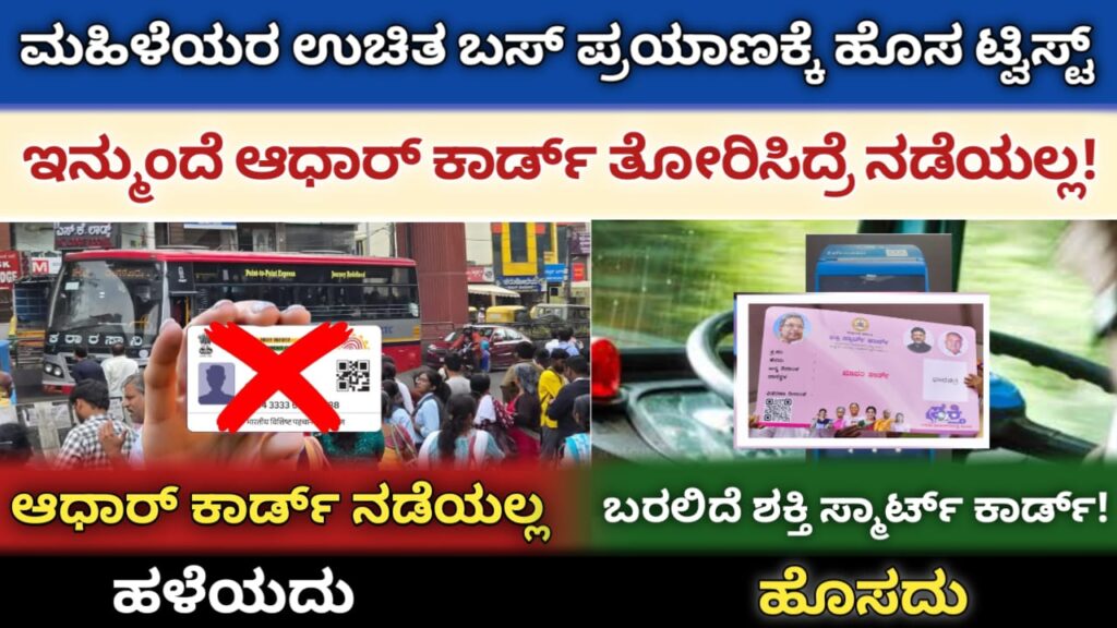ಬರಲಿದೆ ‘ಶಕ್ತಿ ಸ್ಮಾರ್ಟ್ ಕಾರ್ಡ್’ – ಇನ್ಮುಂದೆ ಆಧಾರ್ ಕಾರ್ಡ್ ತೋರಿಸಿದ್ರೆ ನಡೆಯಲ್ಲ! – ಮಹಿಳೆಯರ ಉಚಿತ ಬಸ್ ಪ್ರಯಾಣಕ್ಕೆ ಹೊಸ ಟ್ವಿಸ್ಟ್ !
