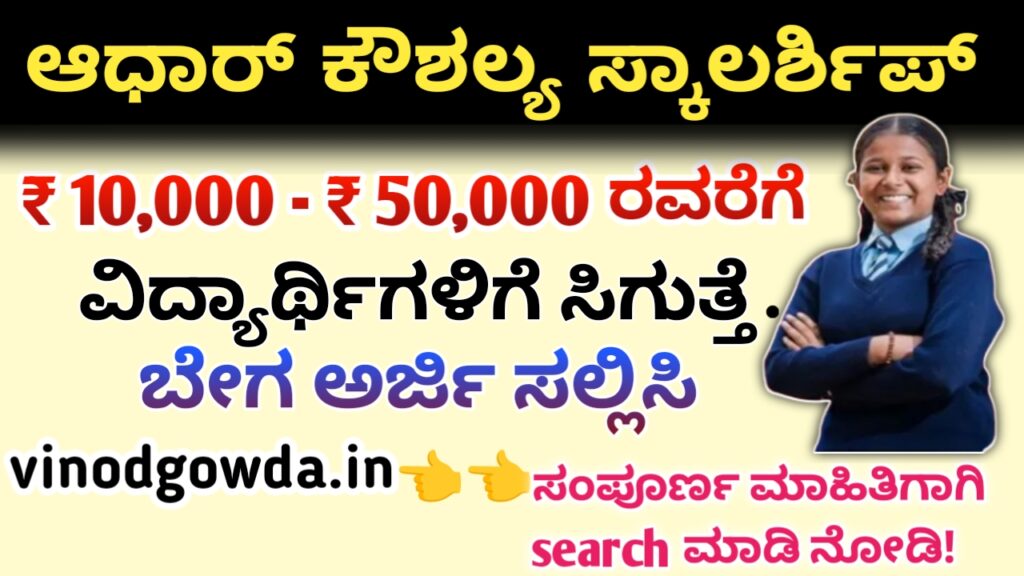 ಆಧಾರ್ ಕೌಶಲ್ ವಿದ್ಯಾರ್ಥಿವೇತನ 2025-26: ವಿದ್ಯಾರ್ಥಿಗಳಿಗೆ ₹10000 ರಿಂದ ₹50,000 ವರೆಗೆ ಸ್ಕಾಲರ್ಶಿಪ್ ಸಿಗುತ್ತೆ.!