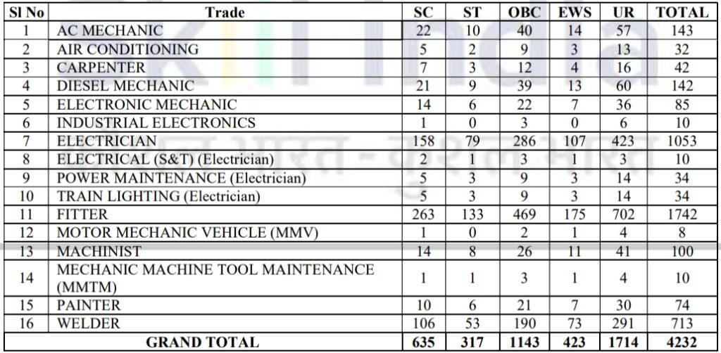 ಖಾಲಿಯಿರುವ ಹುದ್ದೆಗಳ ಸಂಖ್ಯೆ : ಒಟ್ಟು 4232 ಹುದ್ದೆಗಳ ಭರ್ತಿಗೆ ಅರ್ಜಿಗಳನ್ನು ಆಹ್ವಾನಿಸಲಾಗಿದೆ.