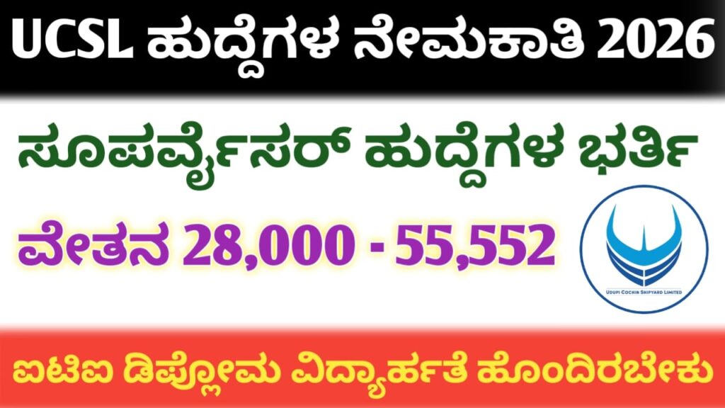 Udupi Cochin Shipyard Supervisor Recruitment 2026 : ಉಡುಪಿ ಕೊಚ್ಚಿನ್ ಶಿಪ್ಯಾರ್ಡ್ನಲ್ಲಿ ಅಗತ್ಯವಿರುವ ಸೂಪರ್ವೈಸರ್ ಹುದ್ದೆಗಳ ಭರ್ತಿಗೆ ಅರ್ಹ ಹಾಗೂ ಆಸಕ್ತ ಅಭ್ಯರ್ಥಿಗಳಿಂದ ಅರ್ಜಿಗಳನ್ನು ಆಹ್ವಾನಿಸಲಾಗಿದೆ. ಹುದ್ದೆಗಳ ಭರ್ತಿಗೆ ಸಂಬಂಧಿಸಿದಂತೆ ಹುದ್ದೆಗಳ ಸಂಖ್ಯೆ, ಕರ್ತವ್ಯ ಸ್ಥಳ, ಶೈಕ್ಷಣಿಕ ಅರ್ಹತೆ, ಆಯ್ಕೆ ವಿಧಾನ ಹಾಗೂ ಇತರೆ ಮಾಹಿತಿಯನ್ನು ಈ ಕೆಳಗಡೆ ವಿವರವಾಗಿ ನೀಡಲಾಗಿದೆ ಪೂರ್ತಿ ಓದಿ.